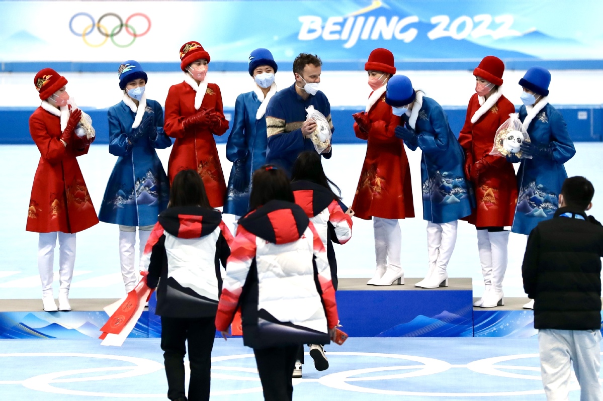 1月30日,拍攝在國家速滑館“冰絲帶”進行頒獎儀式演練。 中國日報記者 張威 攝