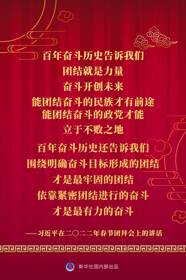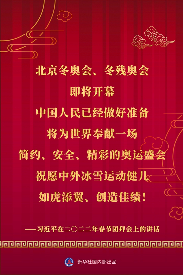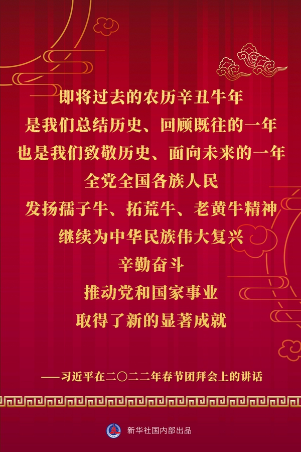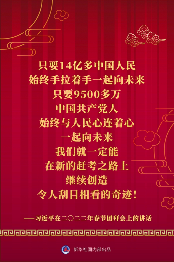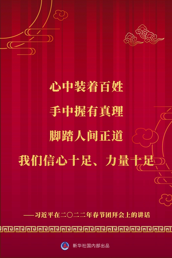 中共中央、國務(wù)院30日上午在人民大會(huì)堂舉行2022年春節(jié)團(tuán)拜會(huì)。中共中央總書記、國家主席、中央軍委主席習(xí)近平發(fā)表講話。一起看金句。