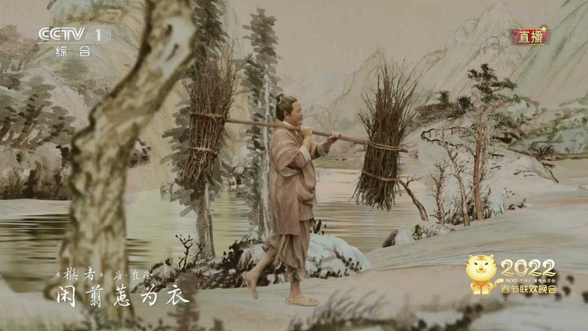 中國傳統(tǒng)樂器的聲音剛?cè)岵?jì),裊裊余音環(huán)繞,《只此青綠》在春晚古樸大氣的舞臺(tái)背景映襯下,與《千里江山圖》跨越古今對(duì)話,將中華傳統(tǒng)之美娓娓道來。