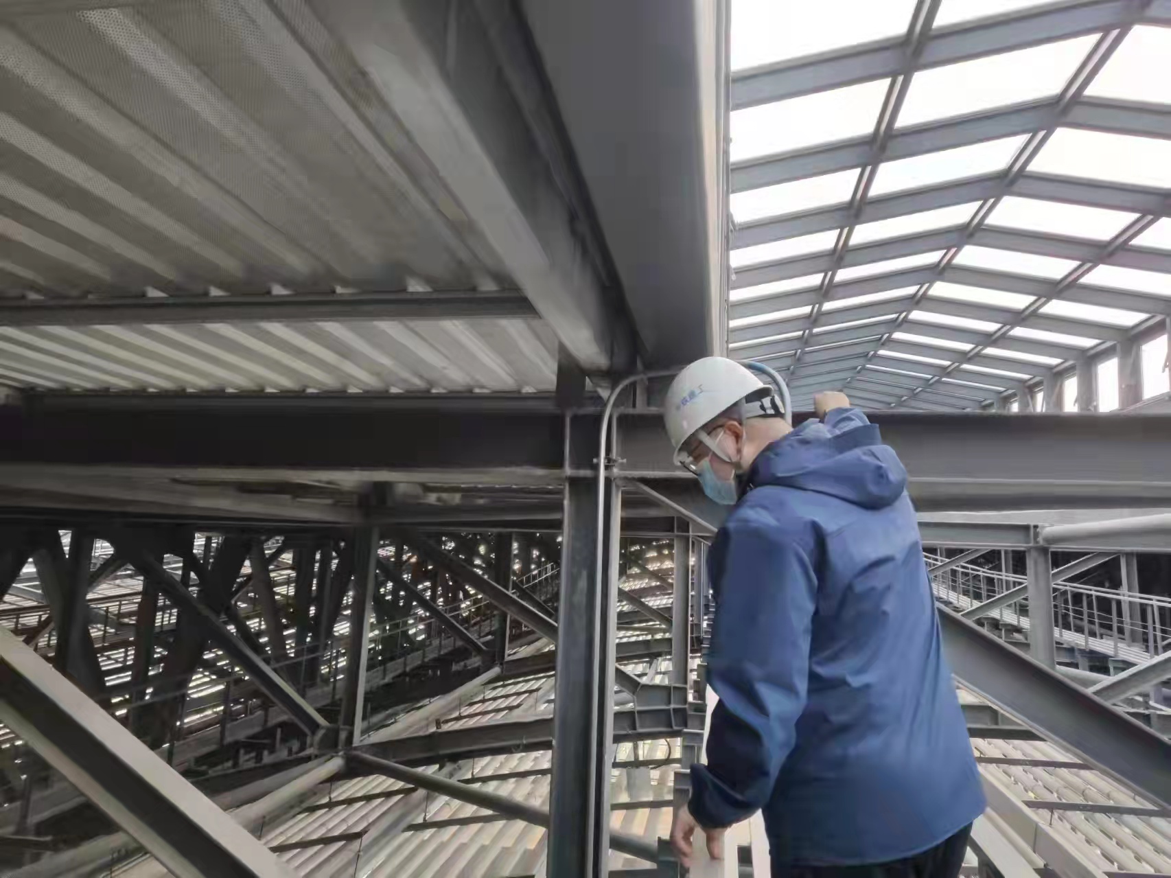 李碩是團隊技術負責人。除夕一大早,他和工友就開始了一天忙碌的工作。清河站的天花吊頂呈弧形,由一萬多根鋁圓管組成。他們沿著檢修間的樓梯向上爬,到達吊頂處的檢修“馬道”,開始逐點檢查,圓管固定結點螺絲有沒有松動,照明燈具有沒有晃動,管線有沒有破損……這樣的“馬道”約長170米,整個屋面共有31條。