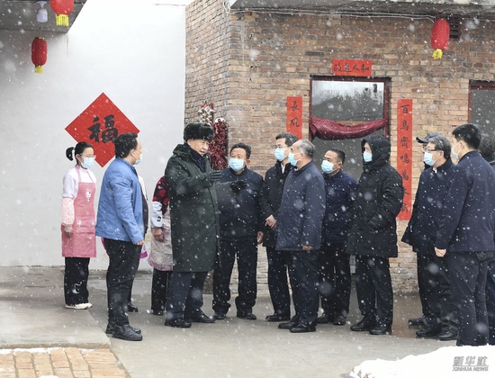 ↑2022年1月26日,習(xí)近平在山西臨汾市霍州市師莊鄉(xiāng)馮南垣村受災(zāi)村民師紅兵家看望。