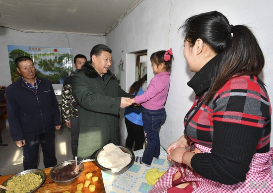 ↑2017年1月24日,習(xí)近平在河北張家口市張北縣小二臺鎮(zhèn)德勝村村民徐學(xué)海家中看望。