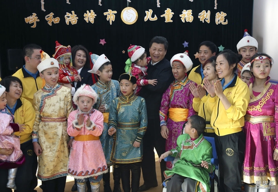 ↑2014年1月28日,習(xí)近平來到內(nèi)蒙古呼和浩特市兒童福利院看望孩子們。