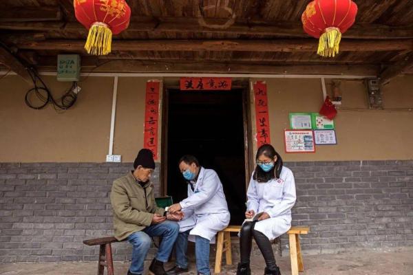 △醫(yī)護(hù)人員來(lái)到重慶石柱土家族自治縣中益鄉(xiāng)華溪村譚登周家,對(duì)他進(jìn)行病情隨訪(fǎng)和健康指導(dǎo)。