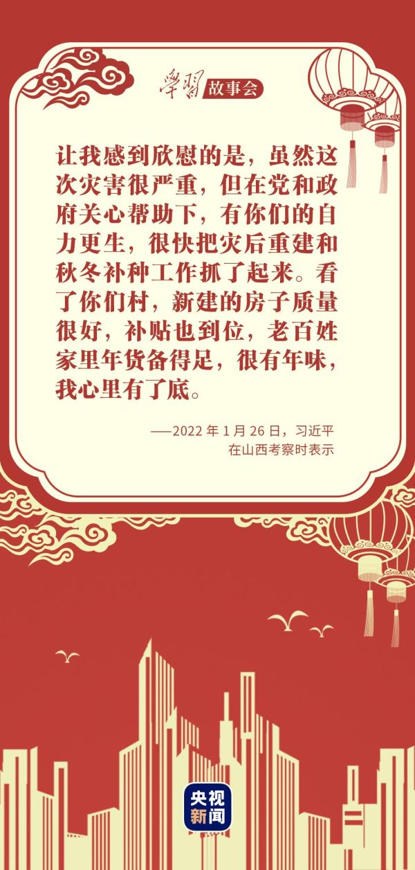 總書(shū)記親切詢(xún)問(wèn)他們重建住房質(zhì)量好不好、年貨置辦齊了沒(méi)有、還有什么困難。師紅兵告訴總書(shū)記,這房子又結(jié)實(shí)又暖和,一家人可以踏踏實(shí)實(shí)過(guò)年了,衷心感謝黨和政府。