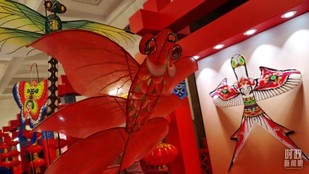年畫、春聯(lián)、剪紙、風(fēng)箏、面塑、中國結(jié)、京劇臉譜、民樂合奏……這些從中國土地上長出來的非遺作品,匠心獨(dú)運(yùn)、光彩照人,讓短短數(shù)十米的廊道化身為精華版的中國“廟會(huì)”。
