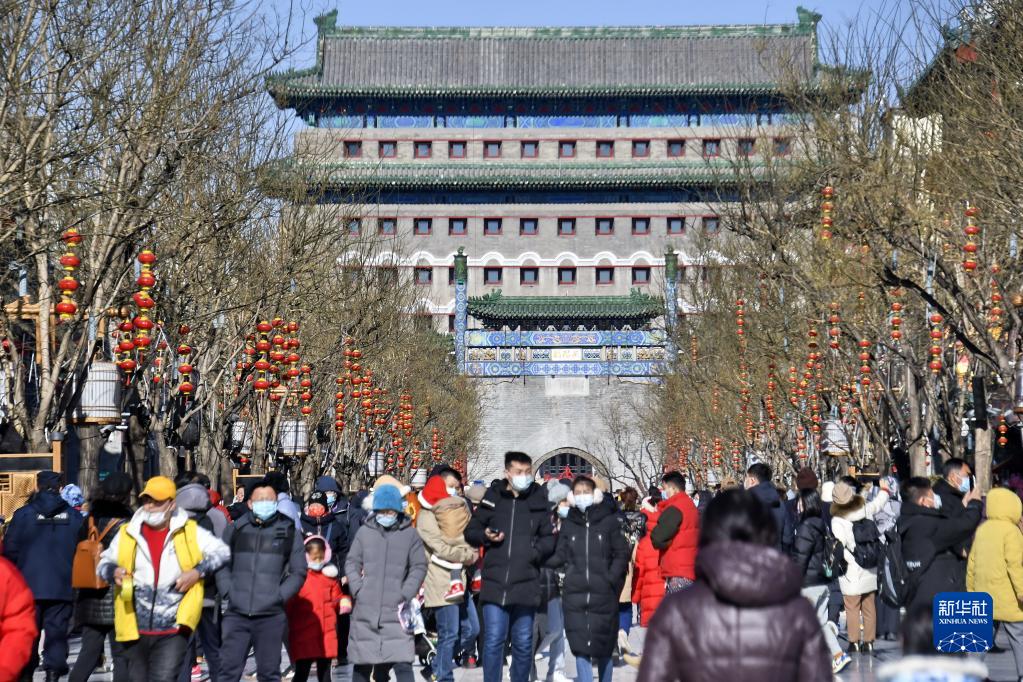2月4日,游人在北京前門大街游覽。