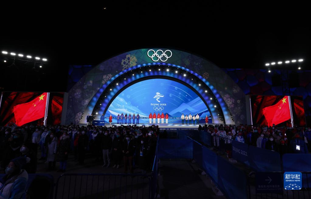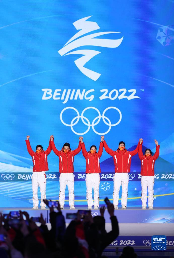 當(dāng)日,北京2022年冬奧會(huì)短道速滑混合團(tuán)體接力獎(jiǎng)牌頒發(fā)儀式在北京賽區(qū)頒獎(jiǎng)廣場舉行。