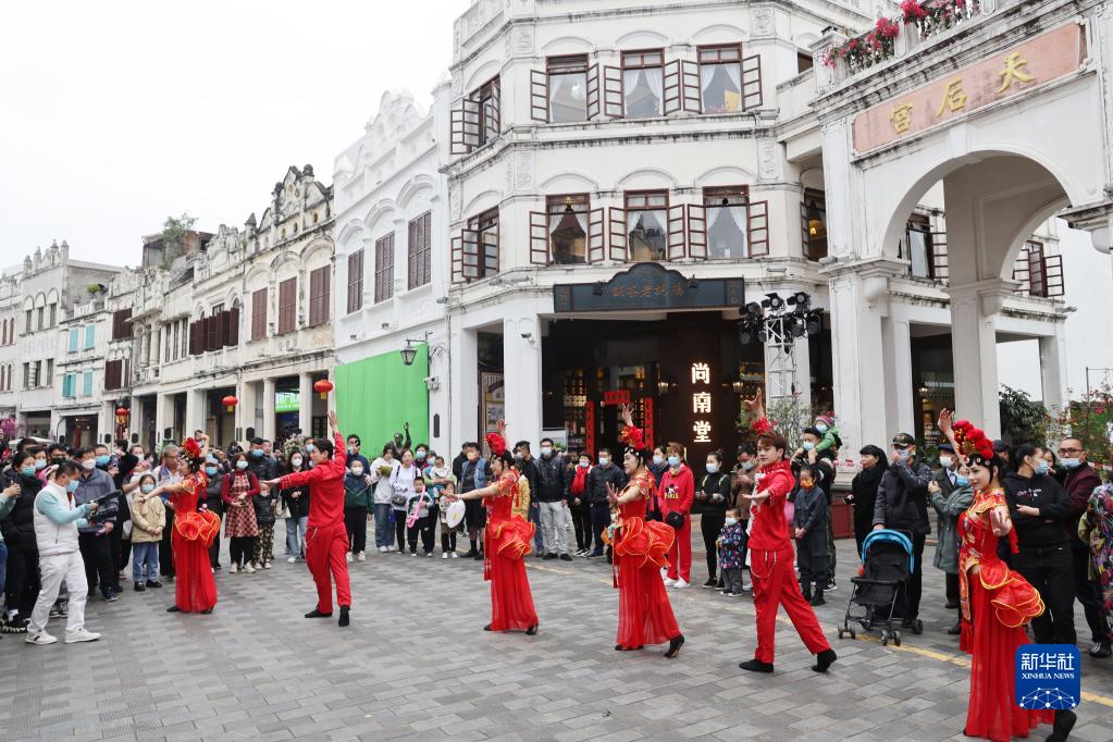 2月5日,市民在?谑序T樓老街觀看表演。新華社記者 張麗蕓 攝