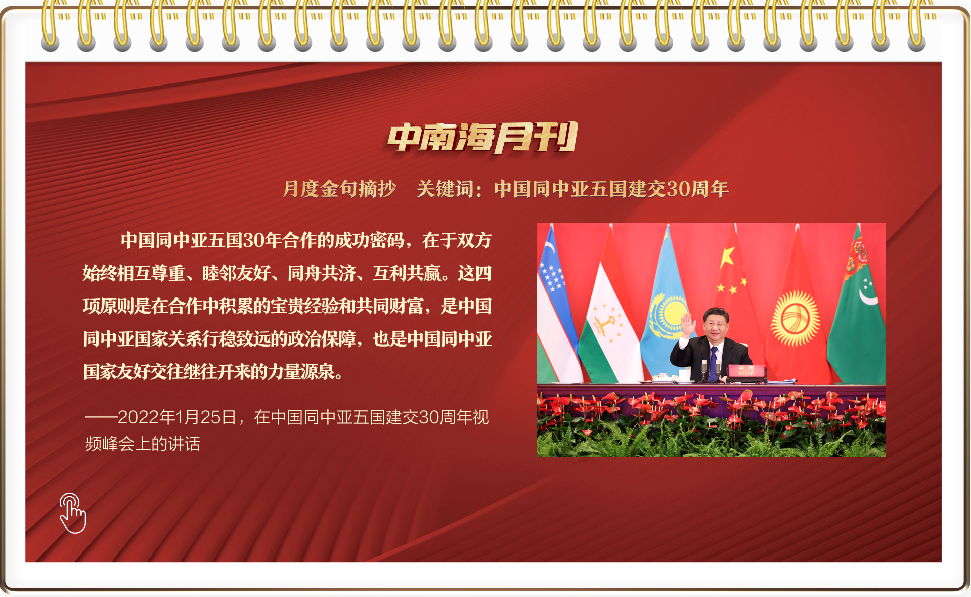 1月25日,習(xí)主席又在北京主持中國同中亞五國建交30周年視頻峰會。