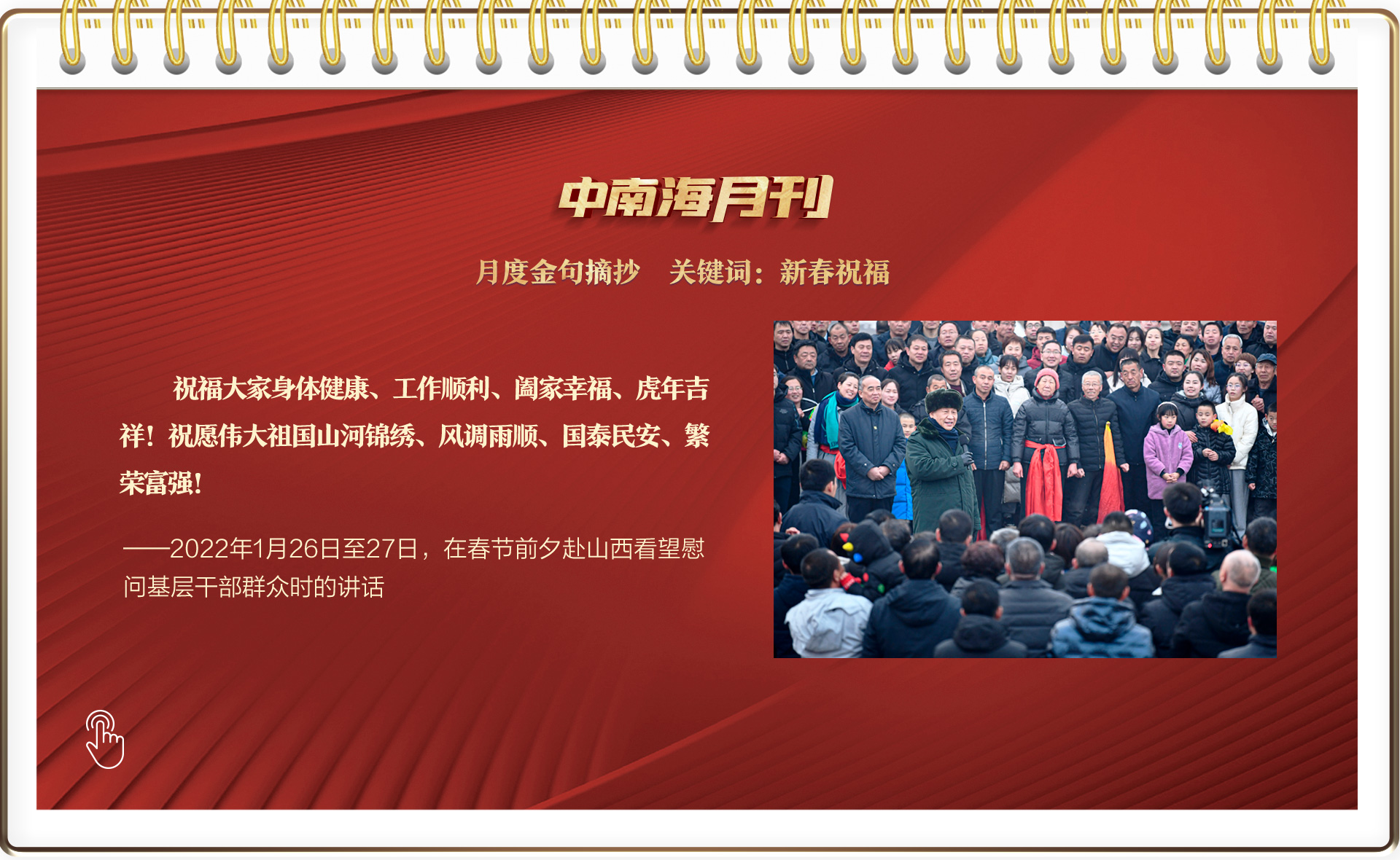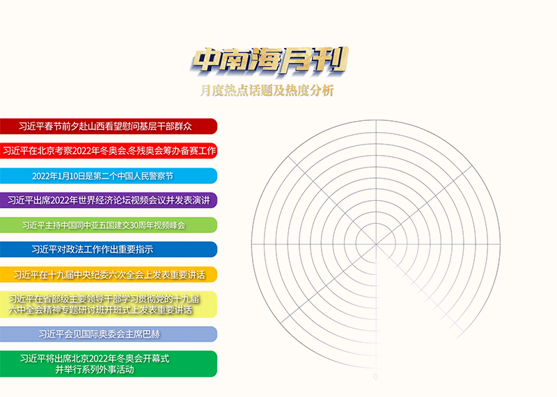 央視網(wǎng)《中南海月刊》運(yùn)用智能大數(shù)據(jù),梳理總書記2022年1月的重要活動(dòng)和講話,一起感悟總書記赤誠的為民情懷。