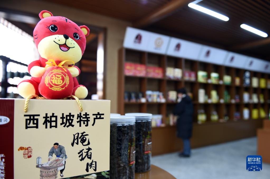 1月28日,在河北省平山縣西柏坡鎮(zhèn)北莊村電商直播助農(nóng)惠農(nóng)展銷基地,工作人員展示特色商品。新華社記者 駱學(xué)峰 攝