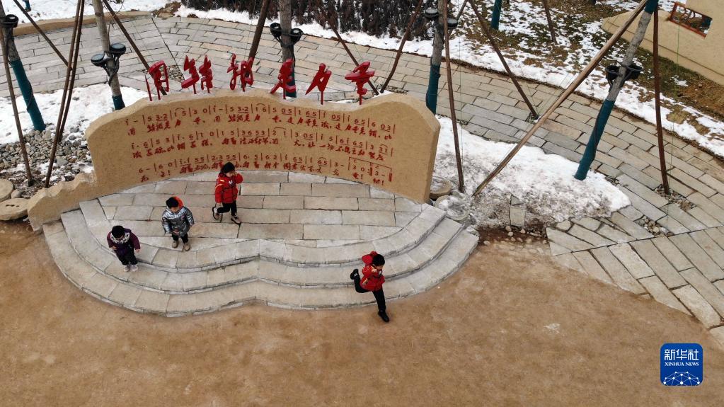 1月28日,小朋友在河北省平山縣西柏坡鎮(zhèn)北莊村(無人機照片)。新華社記者 駱學(xué)峰 攝