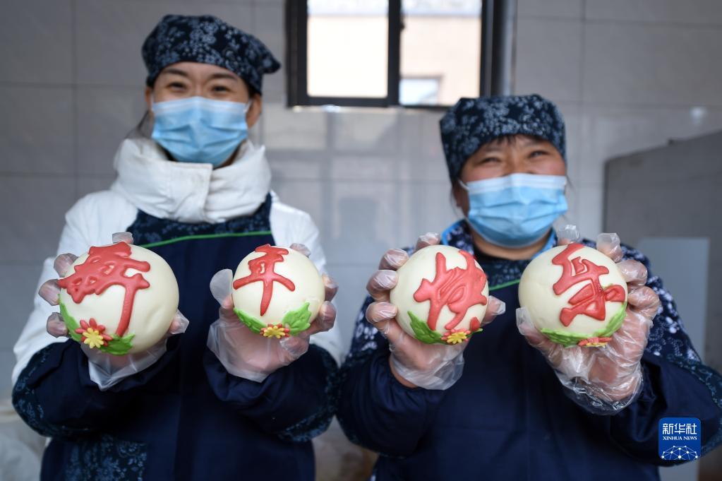 1月28日,在河北省平山縣西柏坡鎮(zhèn)北莊村團結(jié)食堂,工作人員展示制作的特色面食。新華社記者 駱學(xué)峰 攝