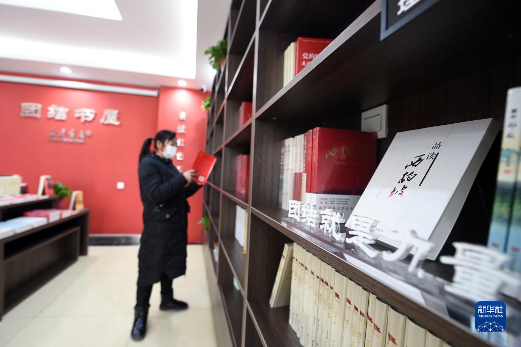 1月28日,在河北省平山縣西柏坡鎮(zhèn)北莊村團結(jié)書屋,工作人員在整理書籍。新華社記者 駱學(xué)峰 攝