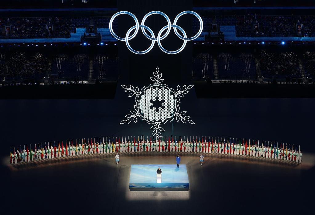 從開幕式上“二十四節(jié)氣倒計(jì)時(shí)”“黃河之水天上來(lái)”等中華文化展示,到頒獎(jiǎng)典禮上穿戴“瑞雪祥云”“鴻運(yùn)山水”“唐花飛雪”服飾的禮儀人員,無(wú)論是色彩系統(tǒng)、核心圖形,還是會(huì)徽、吉祥物、體育圖標(biāo)、火炬,一系列視覺元素都是古老的中國(guó)智慧與奧林匹克精神的交融輝映,是中國(guó)文化和冰雪文化、奧運(yùn)文化的完美融合。