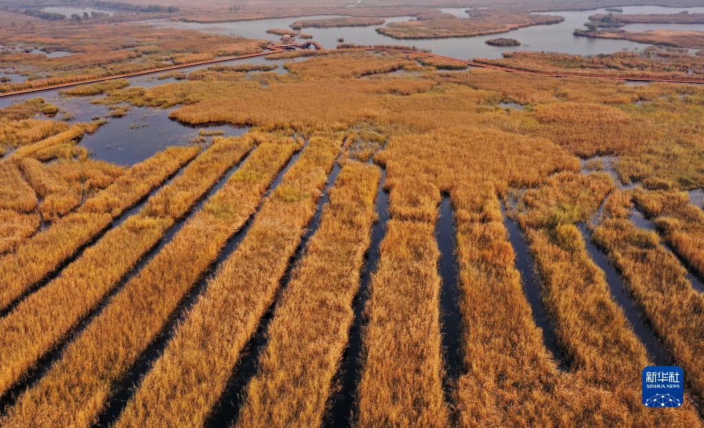 白洋淀內(nèi)的蘆葦蕩(2020年11月5日攝,無人機(jī)照片)。新華社記者 牟宇 攝