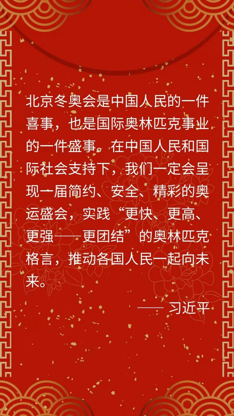 習(xí)近平指出,北京冬奧會(huì)是中國(guó)人民的一件喜事,也是國(guó)際奧林匹克事業(yè)的一件盛事。在中國(guó)人民和國(guó)際社會(huì)支持下,我們一定會(huì)呈現(xiàn)一屆簡(jiǎn)約、安全、精彩的奧運(yùn)盛會(huì),實(shí)踐“更快、更高、更強(qiáng)——更團(tuán)結(jié)”的奧林匹克格言,推動(dòng)各國(guó)人民一起向未來。習(xí)近平并向兩市全體市民致以節(jié)日的問候。
