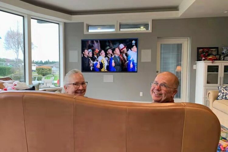 穆里(右)在家觀看北京冬奧會(huì)開幕式。
