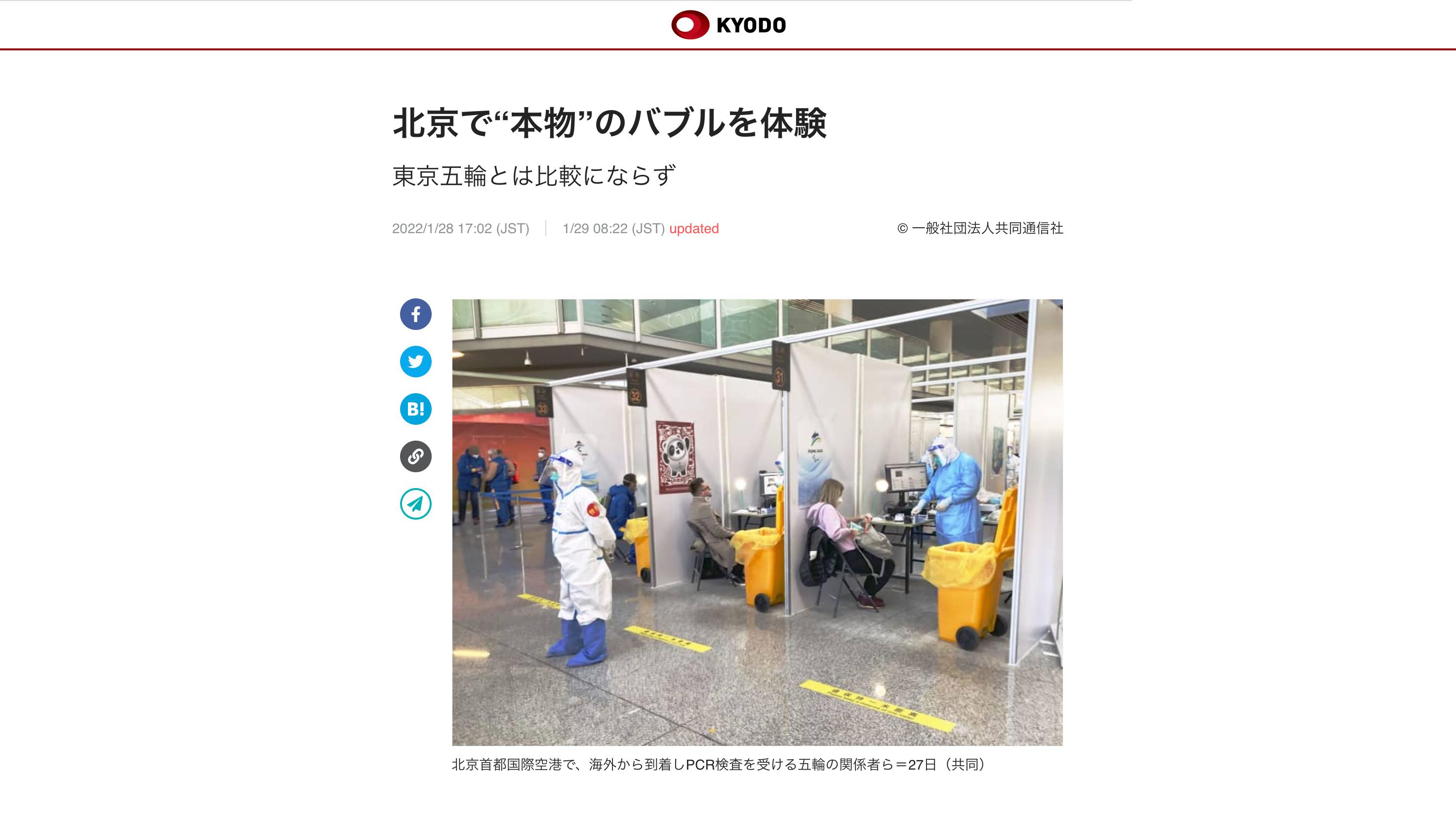 一位來自日本共同社的記者經(jīng)過親測寫下報道:“北京冬奧的防疫‘泡泡’才是真正的‘泡泡’!”