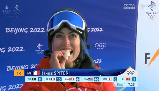 在解答完關于“豆包”的問題后,珍妮絲主動提及她沒實現(xiàn)的目標,“我失誤了,但我還想嘗試900,本來打算孤注一擲,但我心里還有個聲音在說,如果嘗試900,大概率依然會摔,代表馬耳他參加冬奧的機會來之不易,我想在賽場上能留下個‘站著’的記憶!彪S即她補充道,“但我堅信900在未來等著我。”