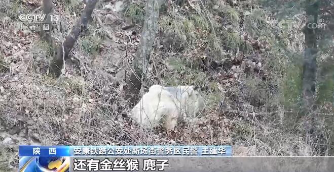安康鐵路公安處新場街警務(wù)區(qū)民警 王建華:因?yàn)榇笱┓馍,很多?dòng)物要下山找水喝、覓食,像羚牛,這就是(正在)覓食的羚牛,還有金絲猴、麂子這些國家珍稀動(dòng)物,經(jīng)常能遇到。