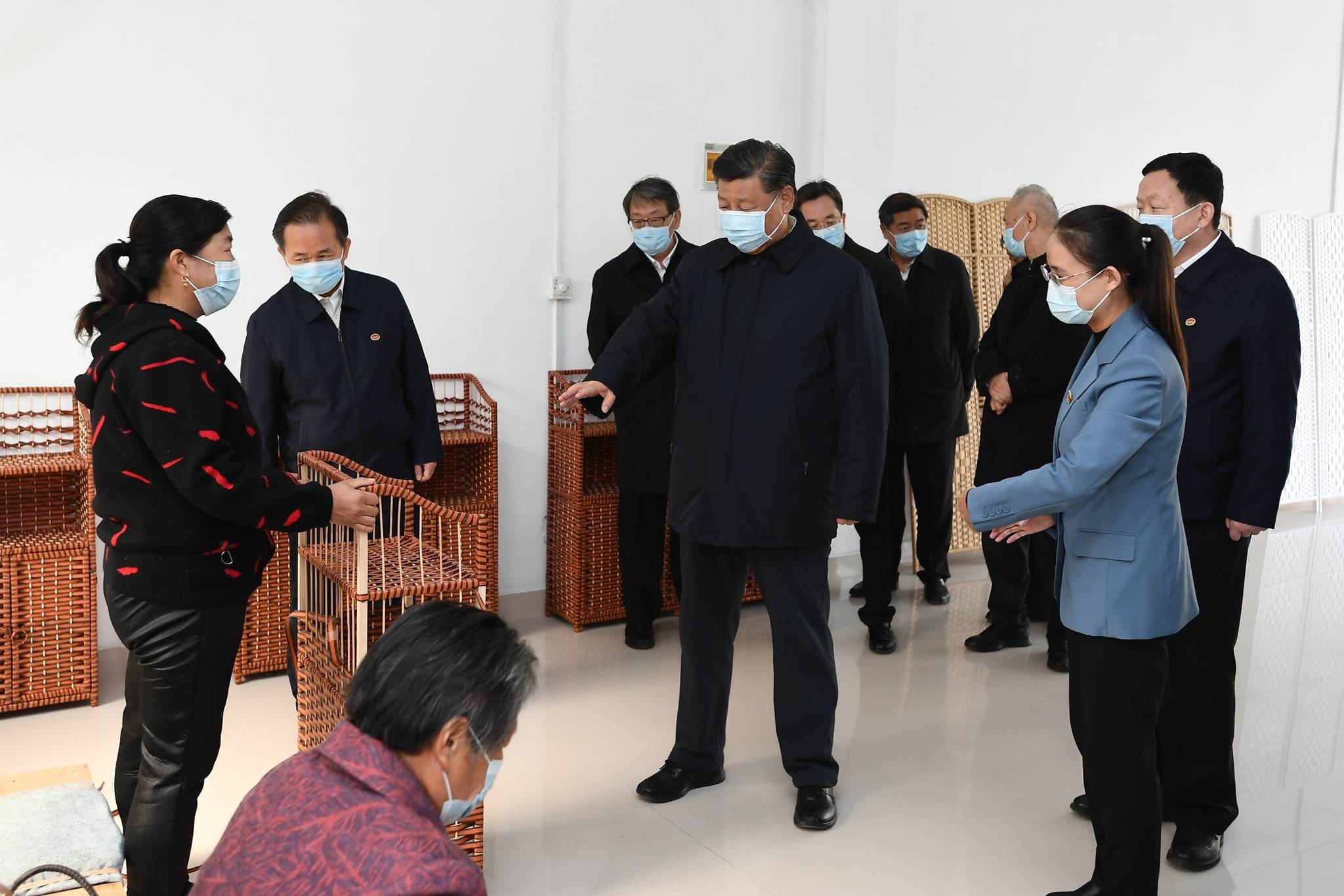 2021年10月21日,在楊廟社區(qū),習近平走進便民服務中心、老年人餐廳、草編加工合作社,詳細詢問社區(qū)加強基層黨建、開展便民服務、促進群眾增收等情況。