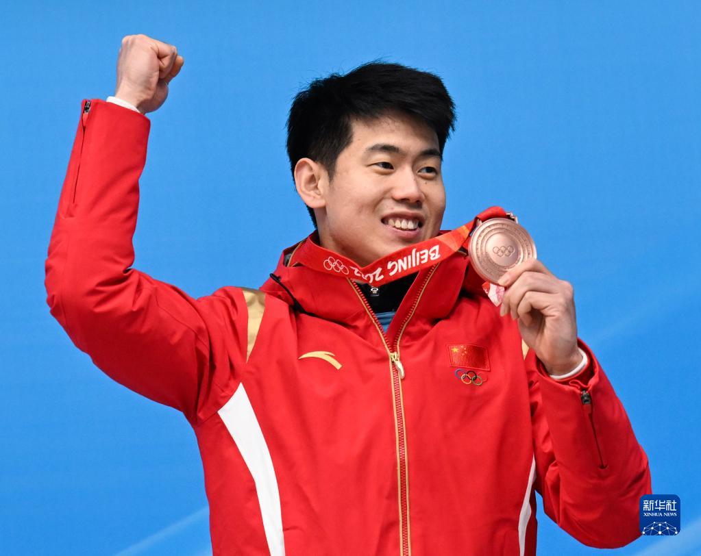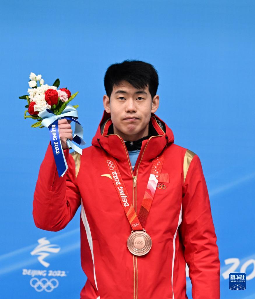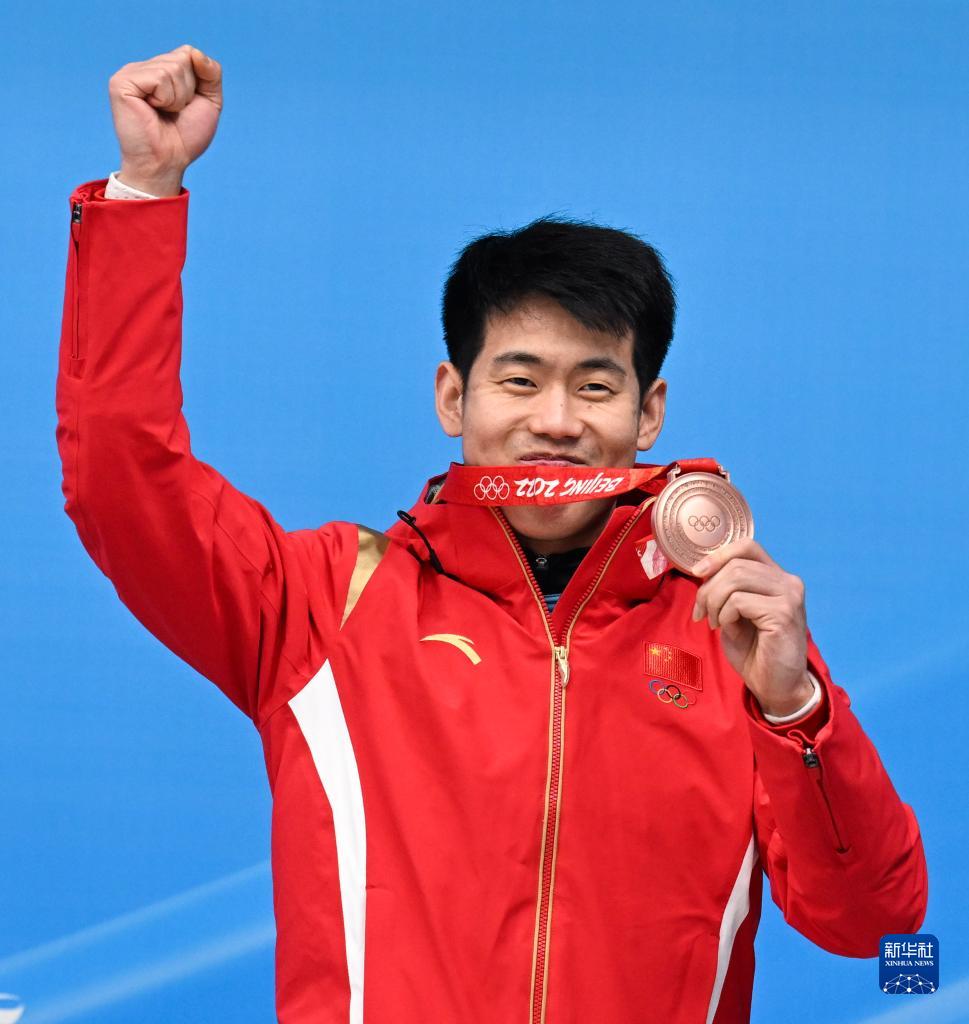 當(dāng)日,在國(guó)家雪車雪橇中心舉行的北京2022年冬奧會(huì)男子鋼架雪車比賽中,中國(guó)選手閆文港奪得銅牌。