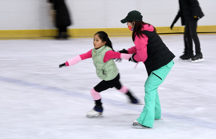 2月9日,一名兒童在朝陽大悅城的冰雪運(yùn)動(dòng)館體驗(yàn)和學(xué)習(xí)滑冰。新華社記者李欣攝