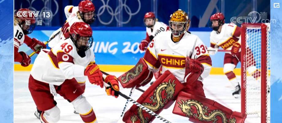 中國女子冰球守門員周嘉鷹,頭戴“咆哮龍頭”,護(hù)膝上繡有雙龍,威武霸氣。