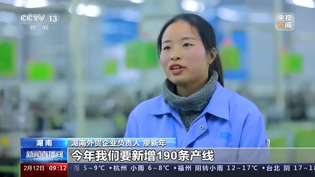 湖南外貿(mào)企業(yè)負(fù)責(zé)人 廖新年:今年我們要新增190條產(chǎn)線,我們還要在4個國家設(shè)立辦事處,努力開拓更多的海外市場。