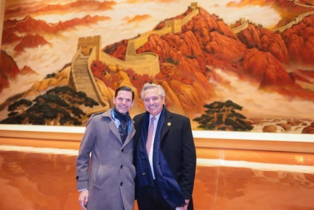 2月4日,阿根廷總統(tǒng)費(fèi)爾南德斯(右)與阿根廷駐華大使牛望道在中國共產(chǎn)黨歷史展覽館內(nèi)合影。圖片由阿根廷駐華大使館提供