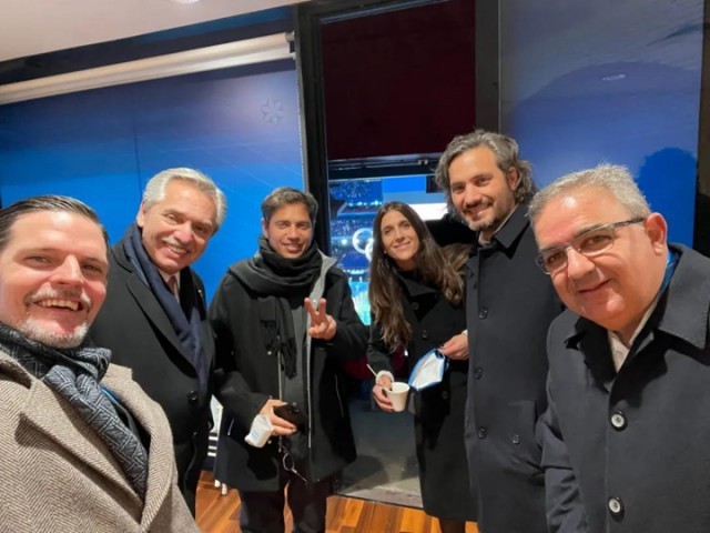 2月4日晚,阿根廷駐華大使牛望道與阿根廷總統(tǒng)費(fèi)爾南德斯(左二)一行在北京冬奧會開幕式自拍。圖片由阿根廷駐華大使館提供