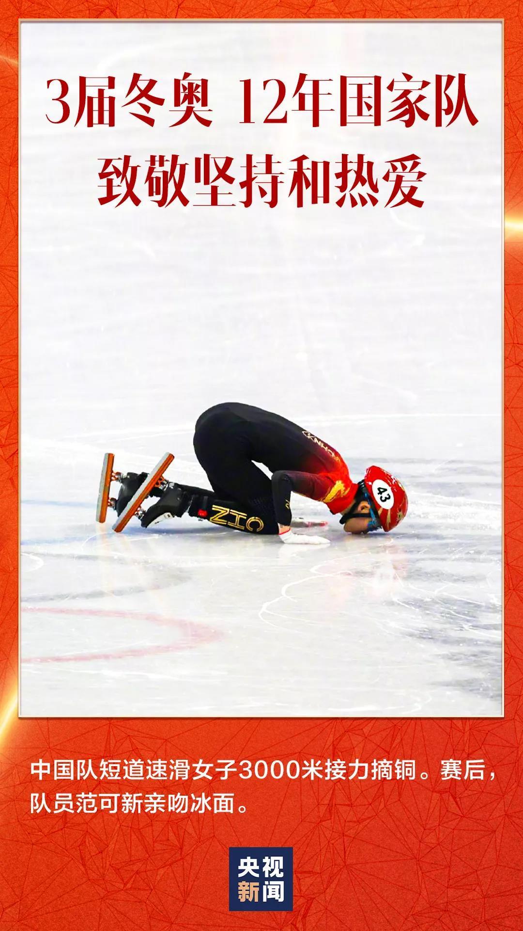 賽后,范可新動(dòng)情地跪地親吻冰面,展現(xiàn)了一名老將的堅(jiān)持和柔情。范可新說(shuō),親吻冰面是想感謝強(qiáng)大的祖國(guó),能舉辦冬奧會(huì),能讓更多我們國(guó)家的運(yùn)動(dòng)員在祖國(guó)的冰面上向世界展現(xiàn)自己!