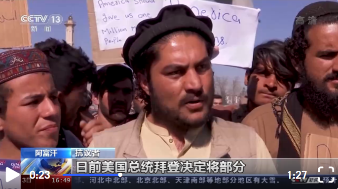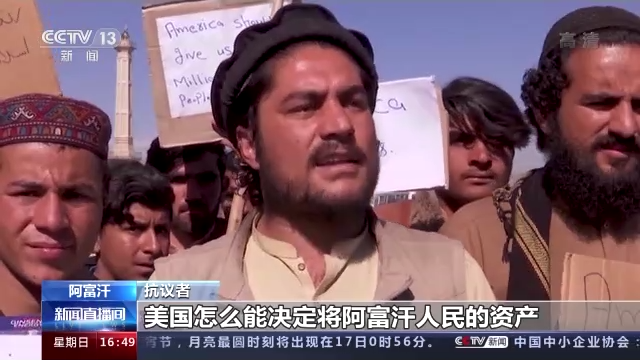 阿富汗抗議者:日前,美國總統(tǒng)拜登決定將部分被凍結的阿富汗資產分配給“9·11”事件受害者,因此我們在這里抗議。我們要問國際社會,美國怎么能決定將阿富汗人民的資產用于(賠償)“9·11”事件受害者?抗議將出現(xiàn)在阿富汗每個省份,作為一名阿富汗青年,我呼吁阿富汗人民站出來抗議,捍衛(wèi)自己的權利。