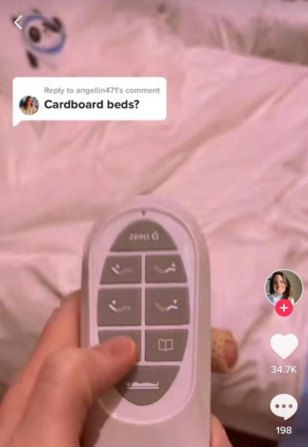 薩默·布里徹先向大家展示了床的遙控器,并介紹床墊可以升高和降低到多個位置,以獲得最大的舒適度。同時,她還體驗了床的“零重力模式”并給予盛贊。