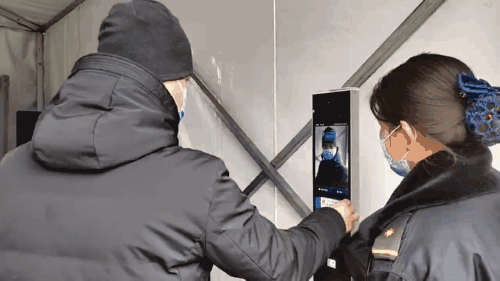 圖為海淀冬奧文化廣場(chǎng)的入口。游客要通過智能測(cè)溫驗(yàn)碼機(jī)器人進(jìn)行紅外體溫測(cè)量,并且刷身份證進(jìn)行人臉識(shí)別,符合入園要求方可入園。中工網(wǎng)記者 劉云攝