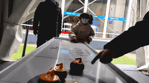 圖為一位家長(zhǎng)帶領(lǐng)孩子體驗(yàn)冰壺運(yùn)動(dòng)。中工網(wǎng)記者 劉云攝