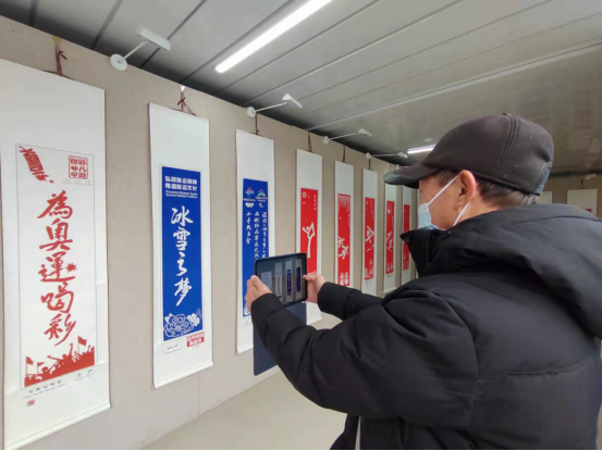 圖為冬奧藝術(shù)展區(qū),這里展覽著以“冰雪”為元素創(chuàng)作出的剪紙作品。中工網(wǎng)記者 劉云攝