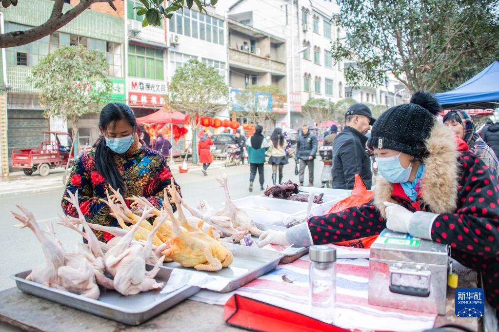1月29日,在湖北省隨縣柳林鎮(zhèn)主街道上,人們在選購年貨。新華社發(fā)(伍志尊 攝)
