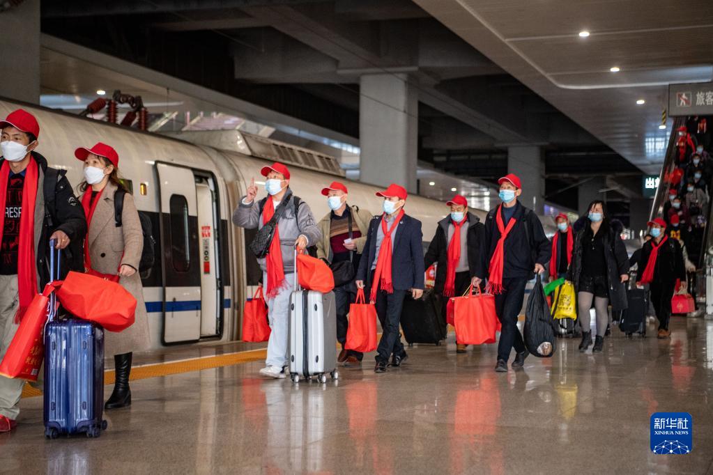 2月16日,返崗務(wù)工人員在重慶西站乘車。新華社記者 唐奕 攝