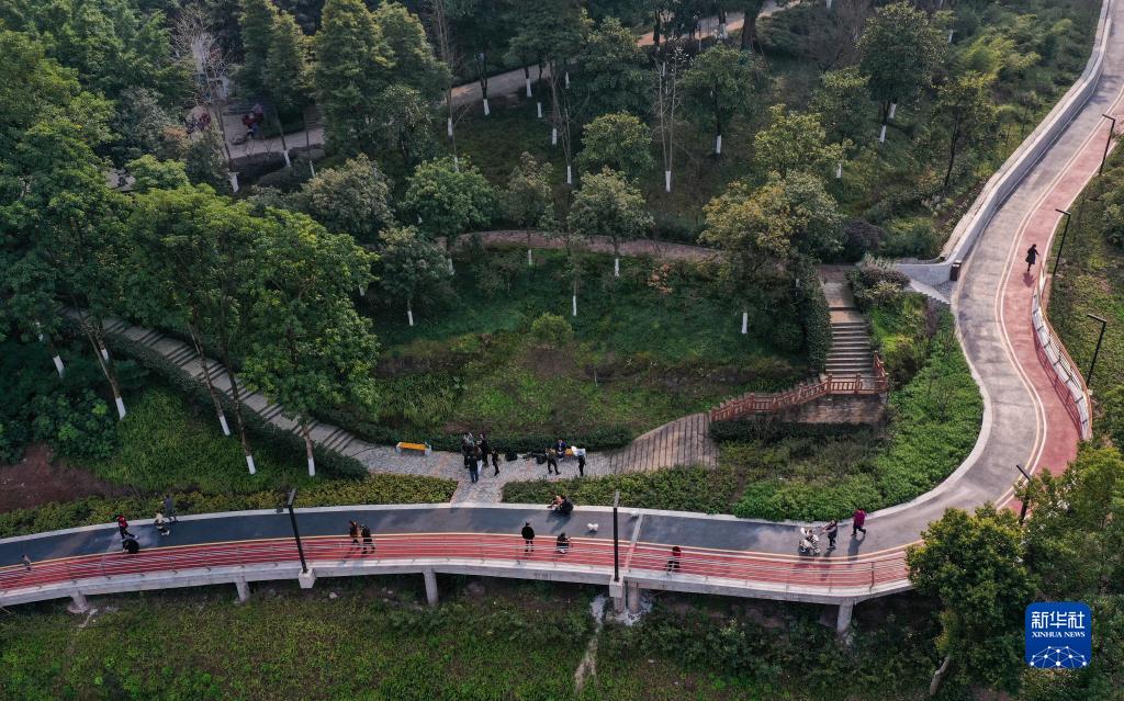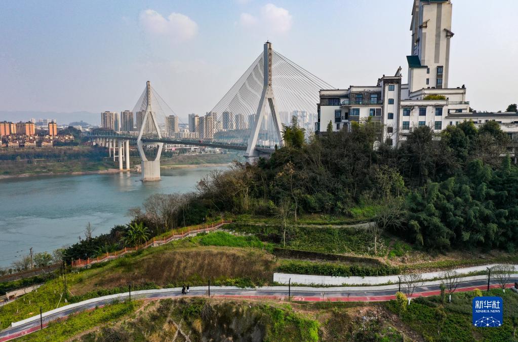 這是2月15日拍攝的位于重慶市大渡口區(qū)的重鋼崖線山城步道附近景色(無人機照片)。新華社記者 王全超 攝