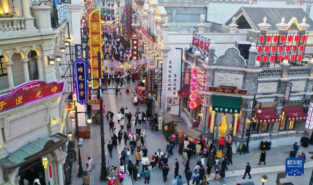 2月5日,游客在河南鄭州建業(yè)·華誼兄弟電影小鎮(zhèn)游覽(無人機照片)。新華社記者 張浩然 攝