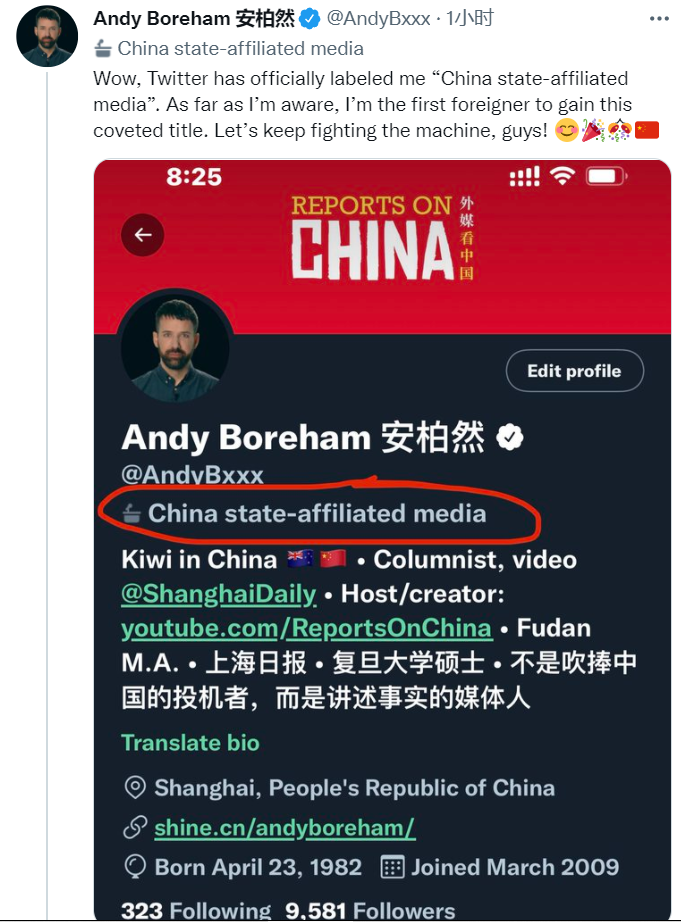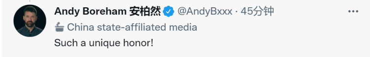 然而,安柏然今日(19日)驚訝發(fā)現(xiàn),自己被推特貼了個標簽:“wow,推特官方給我貼上了‘中國官方媒體’的標簽。據(jù)我所知,我是第一個獲得這一令人垂涎頭銜的外國人。讓我們繼續(xù)與機器戰(zhàn)斗吧,伙計們!”↓推文后還附上代表愉快、慶祝以及中國國旗的表情符號。