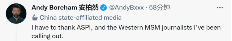 安柏然也大度回復稱:“我要謝謝澳大利亞戰(zhàn)略政策研究所,以及我一直在點的西方主流媒體記者們!薄