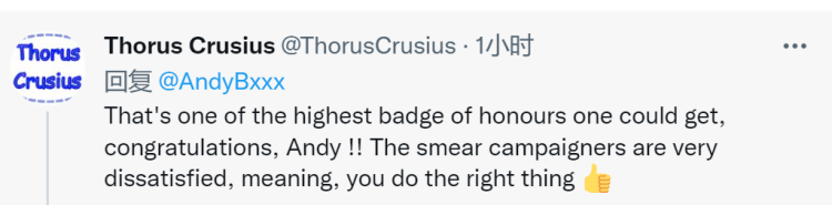 不少人同樣為他感到高興,“這是一個人能得到的最高榮譽標記之一,恭喜你,Andy!!那些誹謗者非常不滿,這意思是,你做了正確的事(豎大拇指)”。↓