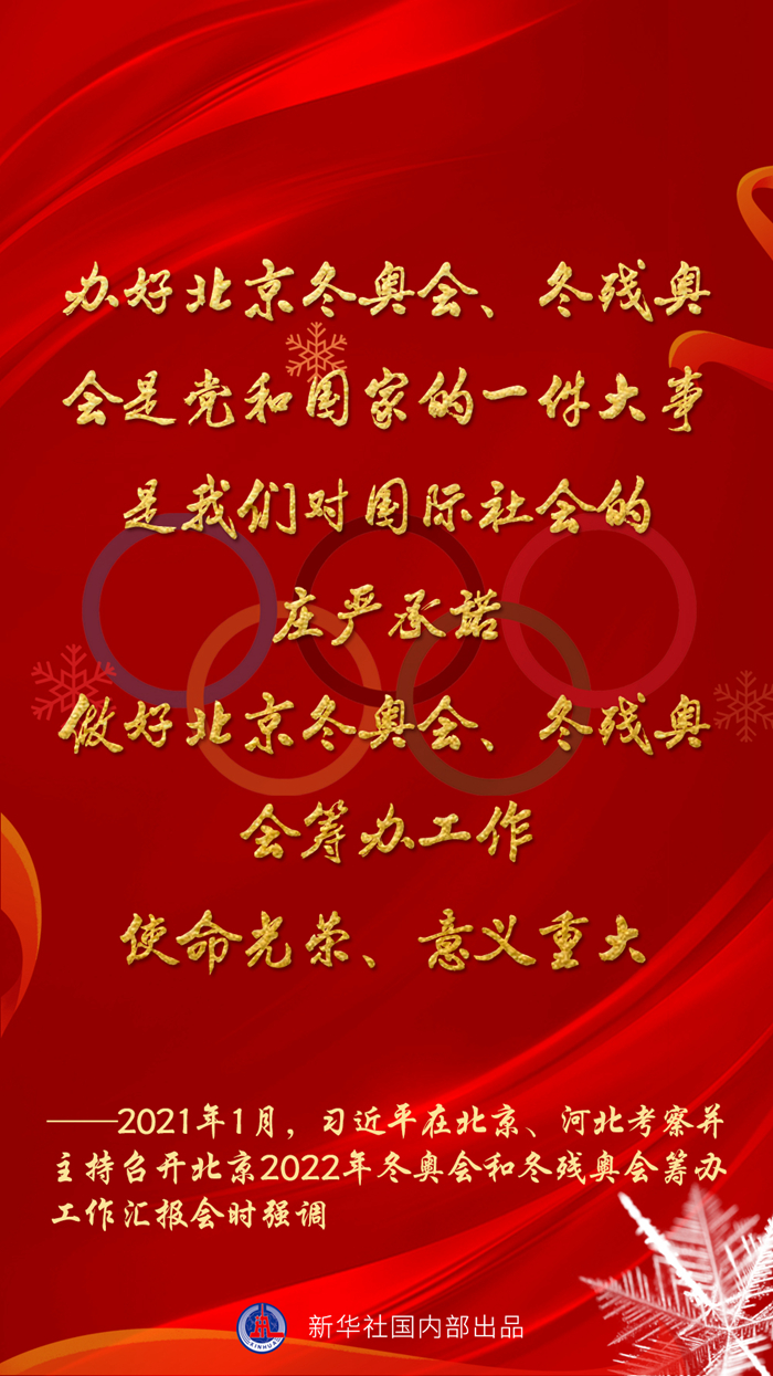 “辦好北京冬奧會、冬殘奧會,是中國對國際社會的莊嚴(yán)承諾!绷(xí)近平總書記說。