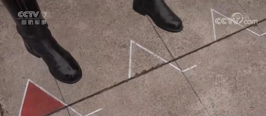 戰(zhàn)士們正在組裝的架子叫踢腿擺臂架,一高一低兩條白色標線專門用來訓練踢腿、擺臂兩個動作,卷尺測量每個動作的角度和距離,軍容鏡時刻檢查動作是否標準,三角標線用來規(guī)范立定動作時兩腳間的夾角。訓練場上隨處可見的測量工具,確保每一個動作都有標準的數(shù)據(jù)。
