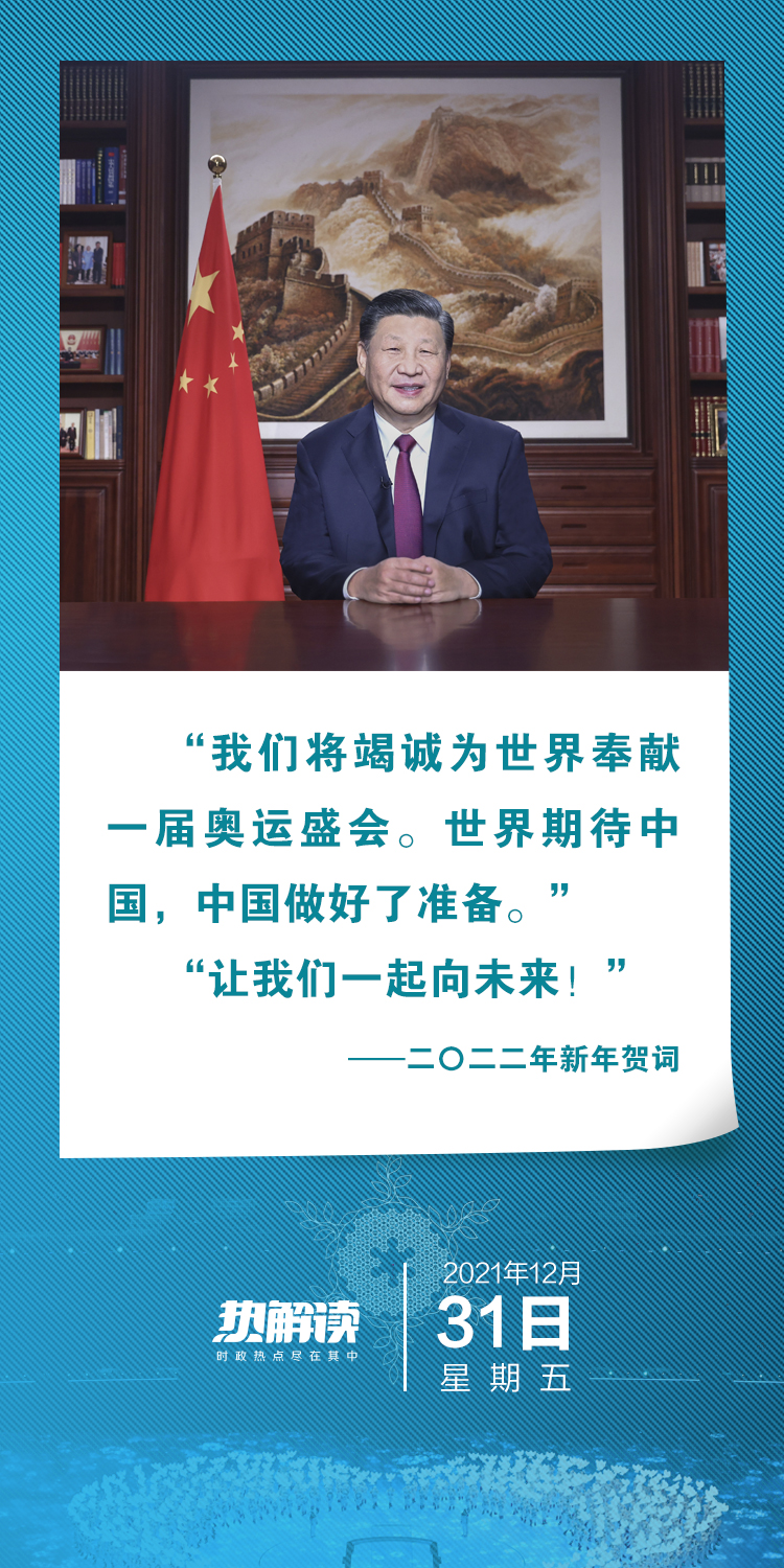 辭舊迎新之際,習(xí)近平主席在二〇二二年新年賀詞中真誠(chéng)呼吁全世界攜手共創(chuàng)美好未來(lái),同時(shí)也為北京2022年冬奧會(huì)和冬殘奧會(huì)的主題口號(hào)“一起向未來(lái)”注入深刻內(nèi)涵。