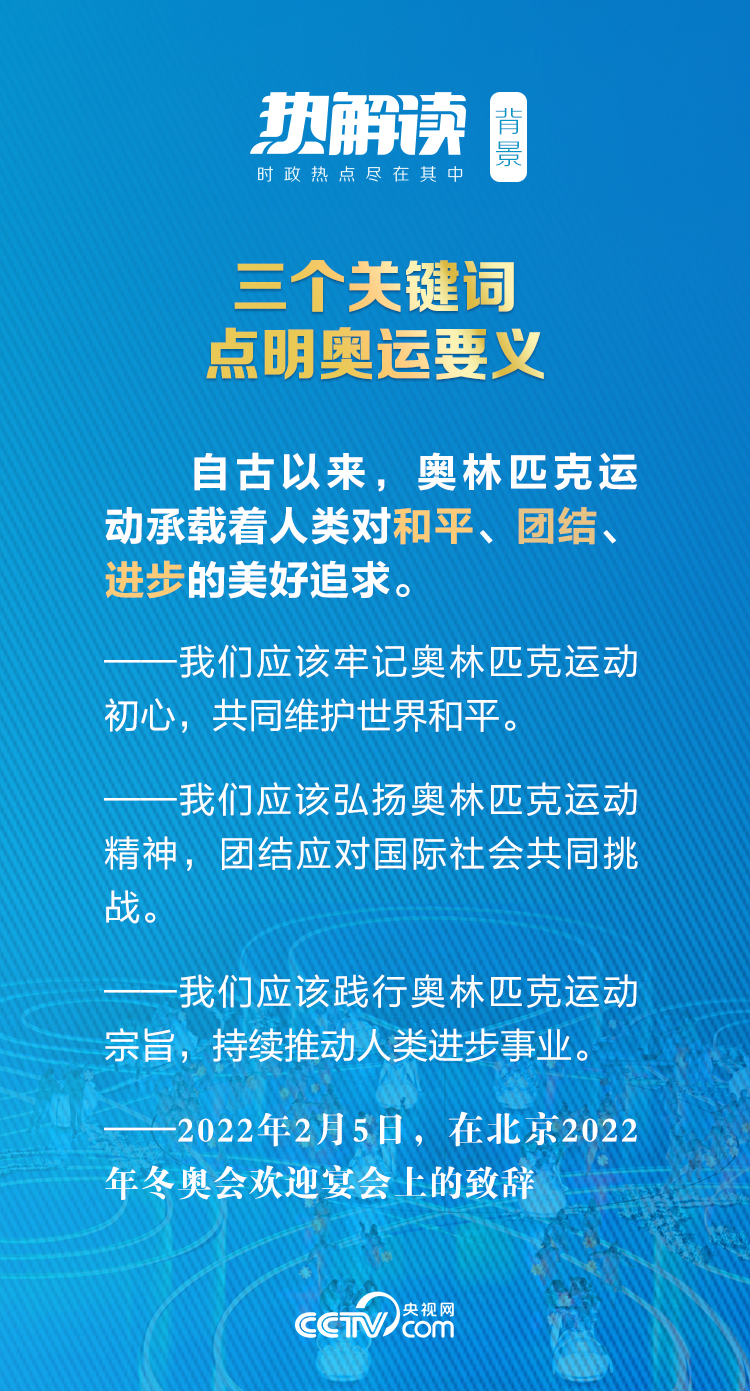 “特別感謝在座的各位朋友克服新冠肺炎疫情帶來(lái)的困難和不便,不遠(yuǎn)萬(wàn)里來(lái)到北京,為冬奧喝彩、為中國(guó)加油!绷(xí)近平主席在北京2022年冬奧會(huì)歡迎宴會(huì)上向與會(huì)的貴賓表達(dá)感謝之情。